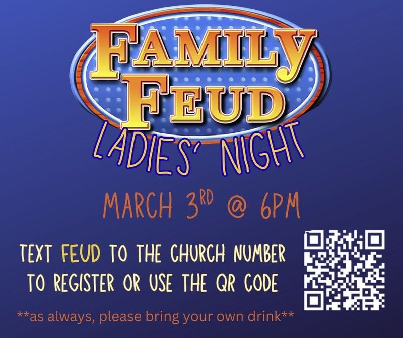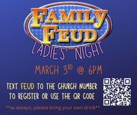 March 3rd @ 6pm! Text FEUD to the church number (1-833-883-9311) to register...or use the QR code.